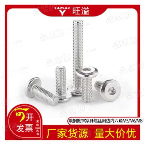 碳钢镀锌平头螺丝倒边内六角家具大圆头倒角斜边盘头螺钉M5M6M8