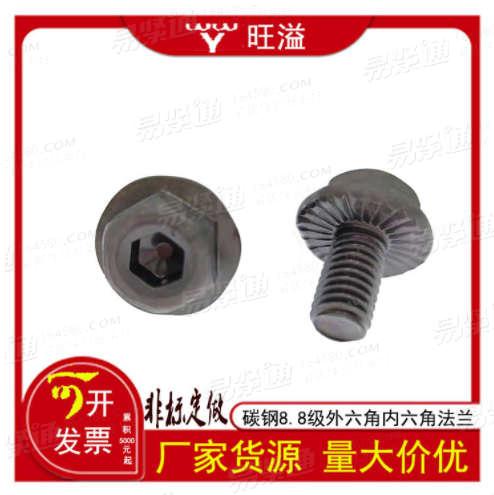 温州厂家非标高强度碳钢发黑外六角内六角法兰带齿螺丝M8*14来图