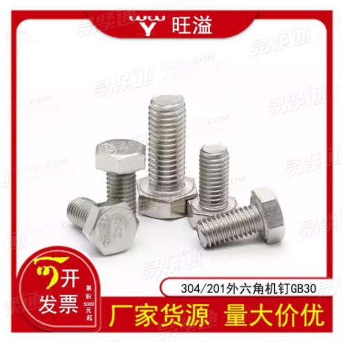 厂家货源GB30外六角螺栓304平脑外六角螺栓平头六角螺丝钉201